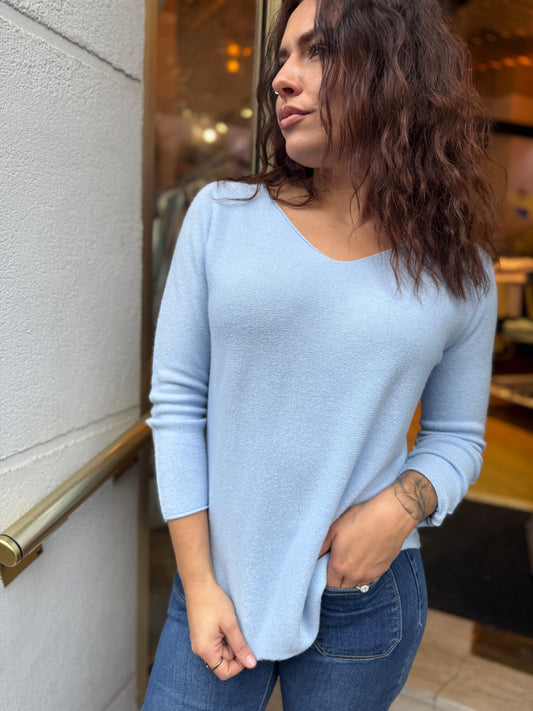 Maille V bleu ciel