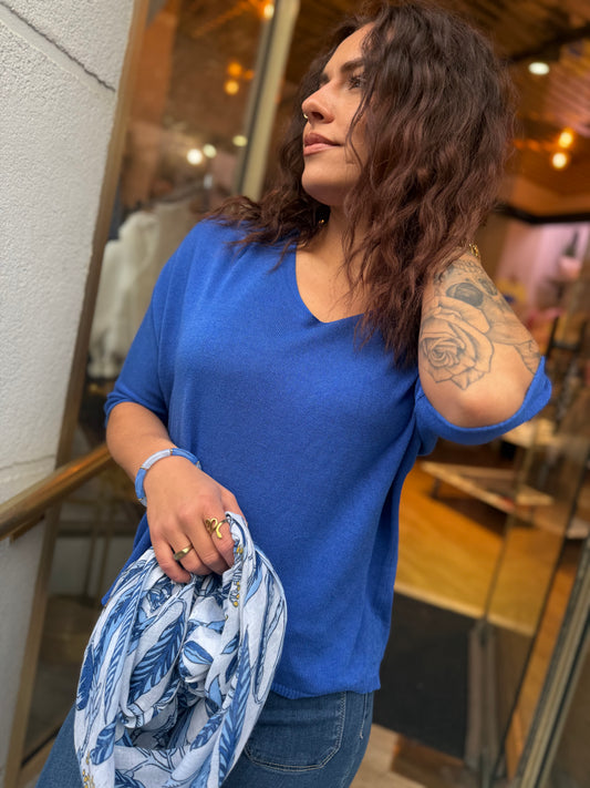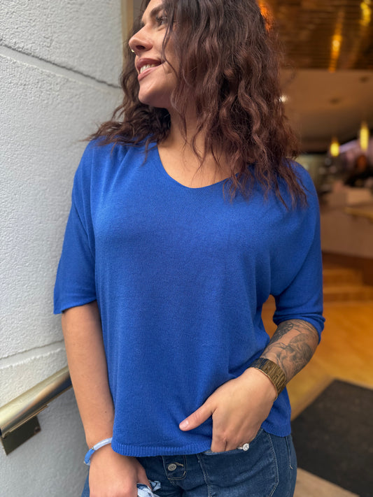 Maille V bleu dur