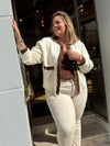 Alliez confort et style avec ce superbe gilet couleur chocolat sublimé par des finitions imprimé léopard. Son mélange d’élégance et de modernité en fait une pièce forte à avoir dans votre dressing.