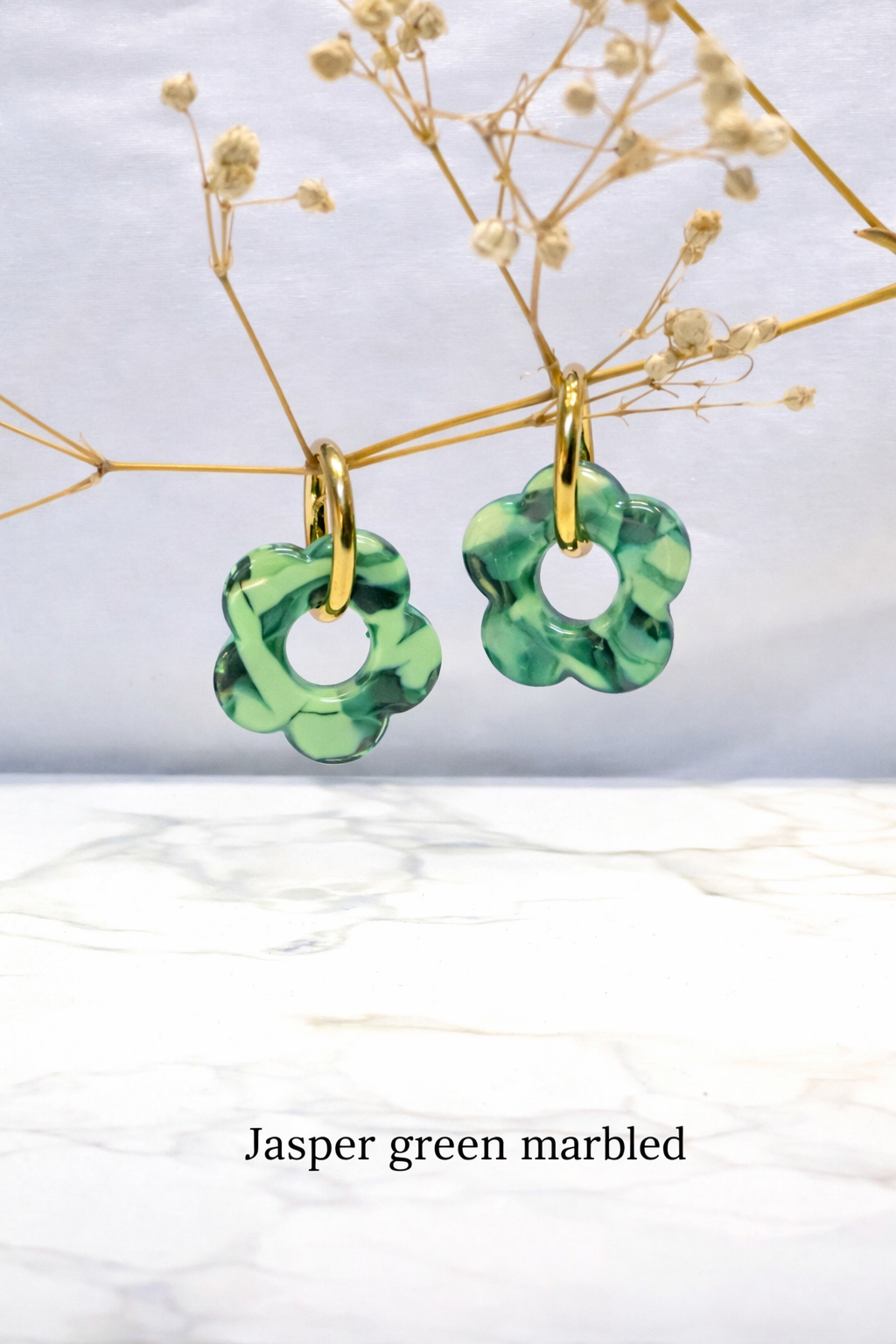 Boucle d’oreille vert marbre