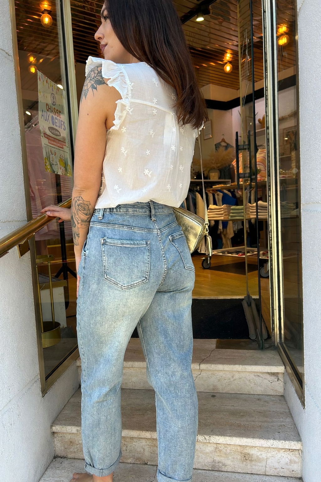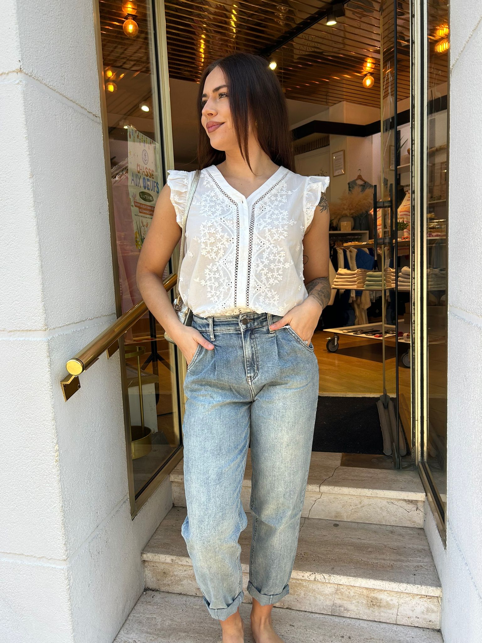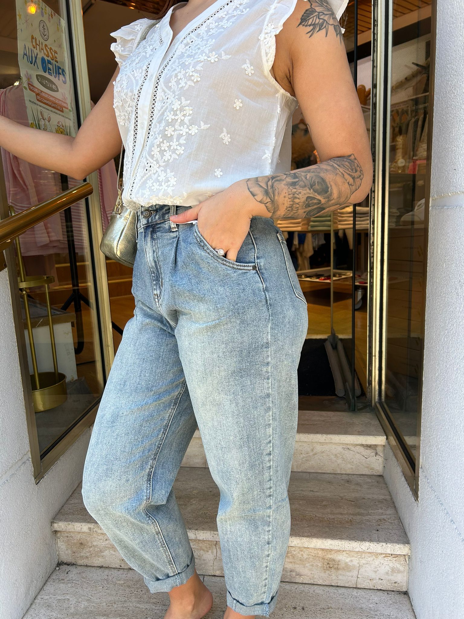 Confectionné dans un denim doux et confortable, il offre un tombé naturel et un look casual chic parfait pour toutes les saisons. Son délavage bleu clair apporte une touche vintage facile à associer, que ce soit avec une blouse romantique ou un t-shirt basique.