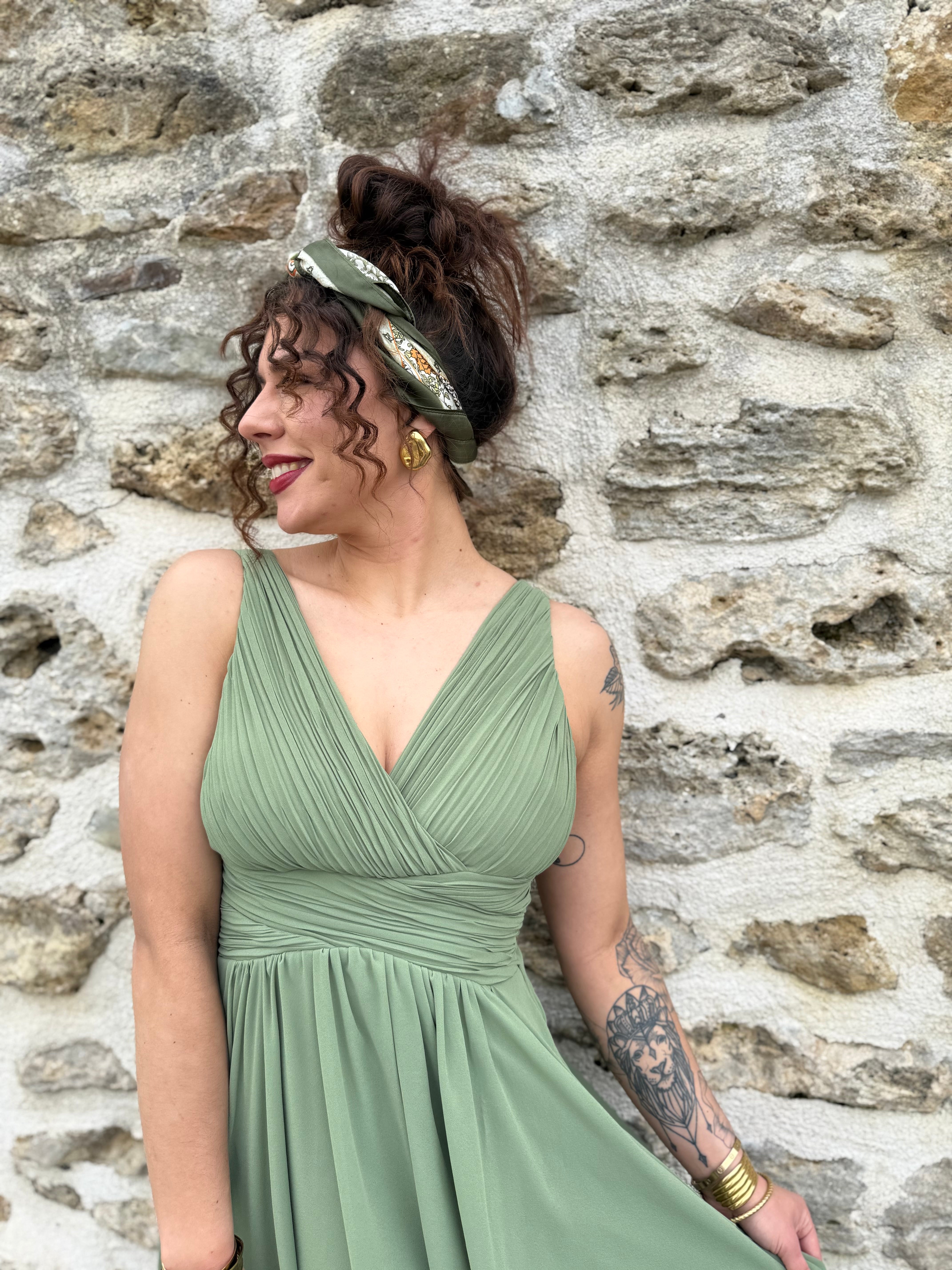 💚 Robe courte de cérémonie fluide vert sauge